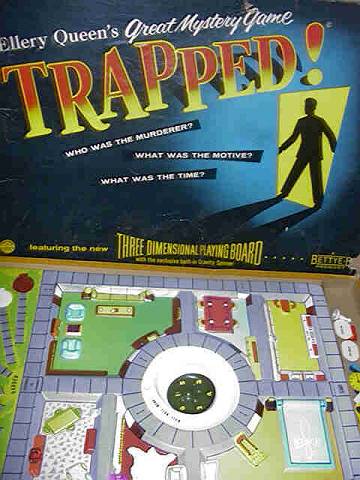Company: Bettye :B Broadway New York We beginnen in 1956 waar de 'Bettye:B company' (Broadway, NY) een spel getiteld (Ellery Queen's Great Mystery) Trapped uitbracht. Hierin werd gebruik gemaakt van een driedimensionaal spelbord. Op het eerste gezicht vrij ver op zijn tijd vooruit maar gezien de 3D-hype van de jaren vijftig niet echt vreemd. |