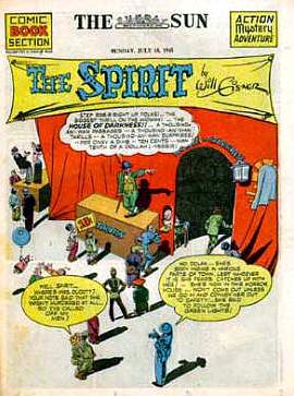 Het tweede voorbeeld verscheen op 18 juli 1943 in The Spirit strip #164, een bijlage in het zondagsblad The Baltimore Sun, gemaakt door Will Eisner. Het verhaal in kwestie waarin de Spirit deduceert hoe met absolute zekerheid een vrouw in totale duisternis kan worden neergeschoten is gestolen uit Queen's "The Adventure of the House of Darkness". Het verhaal is getekend: Eisner. Gezien het grote aantal misdaadgerelateerde strips in dat tijdperk geproduceerd en gezien het feit dat strips toen vrij algemeen als een "wegwerpmedium" werd gezien zal dit waarschijnlijk maar het topje van de ijsberg zijn. Het is dan ook paradoxaal te noemen dat deze geplagieerde verhalen betere voorbeelden zijn van hoe een Queen verhaal in een strip moet worden omgezet.