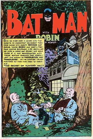 Batman en Robin voor de tweede maal het misdaadduo "Tweedledum and Tweedledee",