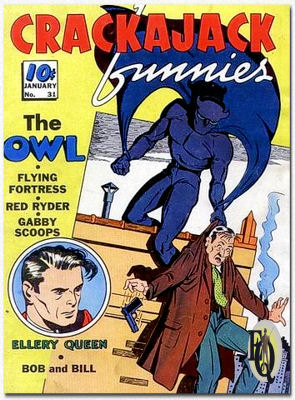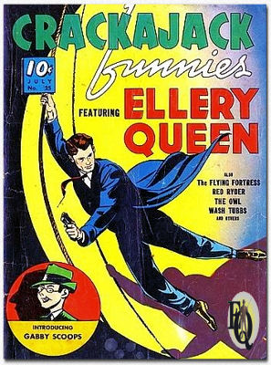 imiteerden. De meest in het oog springende hierbij was "Bentley of Scotland Yard" die verscheen begin de jaren 40 in Pep Comics. In zijn zaken "The Case of the Whistling Doom" (#13 03/1941) en "The Case of the Dancing Ghosts" (#9 11/1940) van de hand van Sam Cooper en Joe Blair, had Bentley veelal te maken met demonische figuren maar telkens was de hoofdschotel een tekening met de uitdaging aan de lezer: "Inspector Bentley knows the killer of... Do you?" "The Zebra" verscheen in Pocket Comics #1 (apr 1941), met in hetzelfde nummer de eerste verhalen van The Spirit of '76, The Black Cat en andere minder succesvolle reeksen. De uitgever was Harvey Comics, beter bekend van Richie Rich en Casper the Friendly Ghost. "The Zebra" werd toegeschreven aan "Ellery King", een voor de handliggende verwijzing naar Ellery Queen toen reeds een bestseller op gebied van detectives. De tekeningen waren van de hand van Pierce Rice (Manhunter) en Arthur Cazeneuve (The Flame). Die eerst uitgave bevatte ook een geïllustreerd verhaal "The Zebra Murder Case" (zie hieronder). ![]() Queen leek ook populair bij de toenmalige stripauteurs en voorzag vaak, zonder krediet laat staan betaling, verhaallijnen voor minstens twee van strip's meest geliefde misdaadbestrijders. Door het vooraf dateren van de verhalen is het moeilijk de chronologie te achterhalen maar ![]() Batman