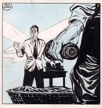 | In The Evening Citizen, Ottawa (17 jun 1950) werd "The Case of the Invisible Lover" gepubliceerd. Het verhaal van 3 pagina's ging vergezeld van een tekening van Paul Norris, voorzien van een copyright uit 1947 van King Features Syndicate Inc. Norris publiceerde soortgelijk werk bij een zesdelige publicatie van het kortverhaal "The Adventure of the Seven Black Cats" in Washington D.C.'s The Evening Star in september 1950 alsook in The Times Union, Albany beginnend op 28 december 1953. | |