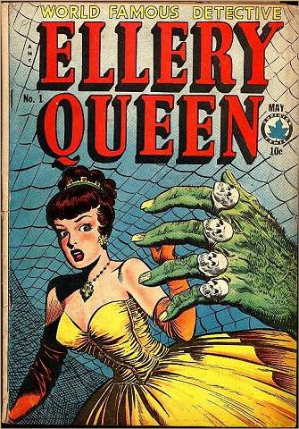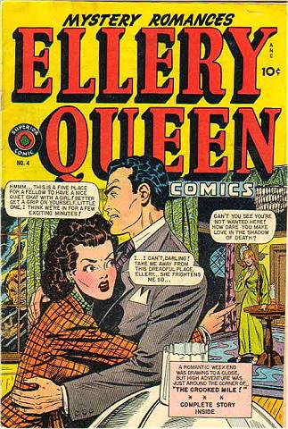 Charlatan!" Superior series #2 met tekeningen van LB Cole Met o.a. als verhalen "Terror Tide", "Calamity Clock", "Vanishing Phantoms", "Devil in the Vault". Hoofdverhaal is "The Bell That Screamed" van Maxfield R. Pater. Superior series #3 met druggebruik, lingerie en folterscenes! Veroordeeld door Frederuc Wertham. In "The Bubble Gum Mystery" ontdekt Ellery dat kinderen drugs toegediend krijgen gebruik te maken van kauwgom waarin drugs gesmokkeld werden. In "The Turbulent Tomb!" deduceert Ellery hoe een geïsoleerde vuurtorenwachter in volle storm werd vermoord. Ontdek hoe een grap van de kapitein ten koste van Ellery de misdaad helpt op te lossen. Is het trouwens een moord of kan een paar pyjamas de reden voor iemands dood zijn? Superior series #4 met de verhalen "The Case of the Seventh Raven" en "The Crooked Mile" tekeningen Jack Kamen. |