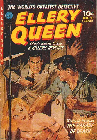 nog stripverhalen uitgaf, een Ellery Queen stripverhaal uit te brengen naar aanleiding van de pas begonnen DuMont television serie rond Ellery Queen. De vier verhalen werden door twee artiesten getekend waarvan er één tekende met de naam "R. Kay". Sommige verhalen braken met het klassieke whodunit-format en waren regelrechte misdaadacties. Niettegenstaande de prachtige geschilderde kaften door Norman Saunders, ging de serie maar twee nummers mee (lente en zomer van 1952), om uiteindelijk nog meer obscuur te worden dan de Superior titels die eraan voorafgingen. Alhoewel Ellery in verscheidene televisieseries verscheen tussen 1954 en 1959, vermeed elke stripuitgever de val waarin enkele voorgangers waren getrapt. Ziff Davis, in 1927 opgericht door William Bernard Ziff Sr. en Bernard George Davis, als New Yorkse uitgever van hobbybladen, is vandaag de dag onherkenbaar. |