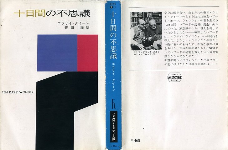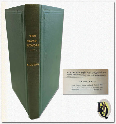 is het noodzakelijk en slim.Howard Van Horn gaat naar het huis van Queen, vastbesloten om hulp van hem te krijgen. Howard heeft af en toe geheugenverlies dat psychiaters niet kunnen genezen vanwege zijn onbewuste weerstand. Howards angst is dat hij misdaden zou kunnen plegen terwijl hij buiten zijn zinnen is, en daarom neemt hij Queen mee naar huis, naar Wrightsville. Wrightsville was de populaire locatie van EQ's 'Calamity Town' en 'The Murderer Is a Fox.' Wat zich in het huis van Van Horn afspeelt, is paradoxaal genoeg ongelooflijk en plausibel. De auteur toont opnieuw zijn begrip door zijn personages te tekenen met een penseel van een kunstenaar. ... Als EQ-correspondent dacht ik dat ik hem kon overhalen om commentaar op het boek te geven. Ik ontving een bericht waarin hij verklaarde: "Ik ben bang dat ik geen commentaar kan schrijven op 'Ten Days' Wonder' of op EQMM. Eerlijk gezegd, Jerry, vind ik het niet passend of gepast voor een auteur om over zijn eigen boek, of een redacteur om over zijn eigen tijdschrift te schrijven (behalve in het tijdschrift zelf)." Aangeboren bescheidenheid inderdaad! 'Ten Days' Wonder' is een verhaal over geweld, liefde en moord. De climax is de meest buitengewone die ik in jaren heb gelezen, en zal lang in dat deel van het geheugen blijven dat gereserveerd is voor uitzonderlijke verhalen." |