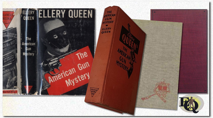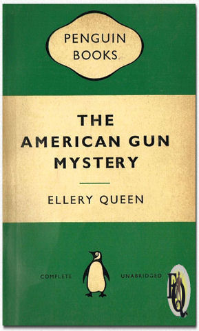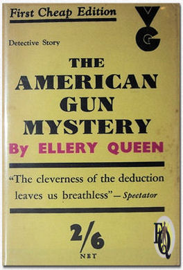 | Boven: Advertenties van vier opeenvolgende New York Times boekbesprekingen in 1933 geven aan dat in de eerste maand van publicatie The American Gun Mystery van Ellery Queen elke week werd herdrukt. |