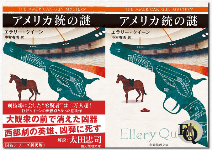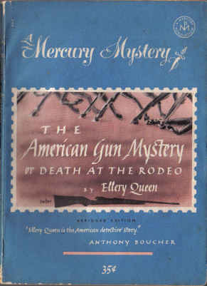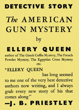 the Week - 22 juli 1933 "De Ellery Queen mysterie verhalen schijnen de hele wereld rond te gaan. Tot nu toe hebben we Egyptische, Griekse, Nederlandse, Franse en Romeinse gehad. Nu is het Amerikaans en 100 procent Amerikaans in 'The American Gun Mystery' (Stokes. $2,00). Een rodeo in het nieuwe Colosseum in New York vlak bij Broadway; de dood rijdt met de rodeo mee voor de ogen van 20.000 toeschouwers en filmcameramannen die zonder enige waarschuwing een moord filmen. Uw mysterie-verslaafde heeft een smaak die gemakkelijk afgemat, over-exact en zeer kritisch tegelijk is. Voor hen stuurt de auteur een pamflet mee, waarin hij genoeg van zijn techniek uitlegt om de lezer een eerlijke uitdaging te bieden. Het ontrafelen van de plot wordt dan een spel, waarbij het verstand van de lezer op scherp staat, in het vertrouwen dat de auteur het eerlijk zal spelen en voldoende aanwijzingen zal geven om de plot op te lossen, die, zo belooft hij, slechts één oplossing en één misdadiger heeft. Zonder de openhartige uitdaging om zich met de auteur te meten, is het verhaal misschien niet helemaal bevredigend of overtuigend voor de eerlijke fan die zijn mysterie eerlijk wil aangeboden krijgen." |