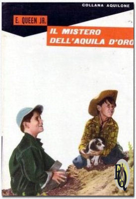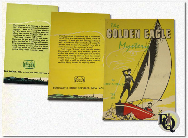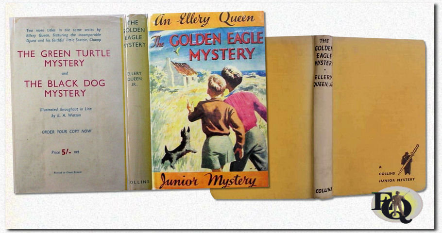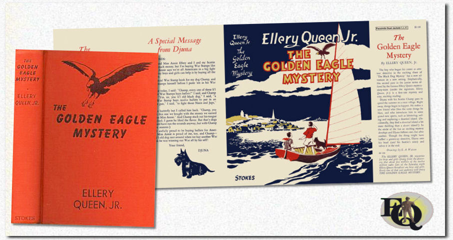 geschreven werden door Montanye. Wat meteen ook een ander licht werpt op Frank Belknap Long's toegeving, in een brief aan August Derleth, van twee of drie verhalen voor zijn rekening te hebben genomen. Voor die identificatie ging men dus voort op Mike Nevins' bewering Maar Long's twee overblijvende boeken kunnen dus maar de eerste twee zijn: The Black Dog Mystery en The Golden Eagle Mystery. Er was even ook sprake van een derde volume The Mystery of the Golden Butterfly welke nooit zou zijn gepubliceerd. (Zonder verwijzing naar EQ jr wordt dit "ongrijpbaar" volume vermeld zowel op de achterflap van Long's The Horror from the Hills, 1963 als op de achterflap van The Rim of the Unknown, 1972). (Om meer te lezen over het Ellery Queen Jr auteurschap klik hier...) |