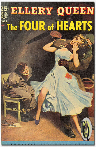 Als Ellery Queen naar Hollywood komt om een filmscenario te schrijven, is zijn opdracht niet eenvoudig. De maatschappij waarvoor hij schrijft wil namelijk een film maken over het leven van twee grote Hollywoodse acteursfamilies: de Royles en de Stuarts, die elkaar als gevolg van een reeds jarenlange bestaande vete op de meest ergerlijke manier in het openbaar bekladden. Maar in het filmparadijs van het land der onbegrensde mogelijkheden kan gebeuren wat niemand verwacht: Jack Royle en Blythe Stuart gaan trouwen! Ze keren echter van de huwelijksreis niet terug; onder verdachte omstandigheden vinden zij de dood. Hartenvier is één van de speelkaarten die Ellery Queen ertoe brengen zich nog intensiever met de familie te gaan bezighouden. Op die speelkaarten staan dreigementen aan de zoon van Jack en de dochter van Blythe, uit hun respectieve vorige huwelijken, getypt. Wie bedreigt deze jonge mensen? Op welke machine zijn die bedreigingen getypt? Deze en nog veel meer vragen moet Ellery oplossen. En hij slaagt daarin, natuurlijk op zijn bekende originele manier. Hij weet de slimme moordenaar van Jack en Blythe te ontmaskeren op het ogenblik dat deze op het punt staat een nieuwe misdaad te begaan. |