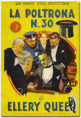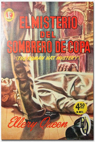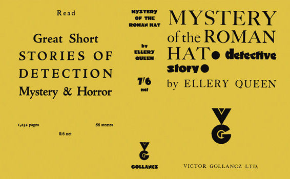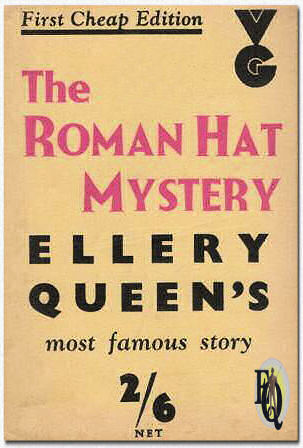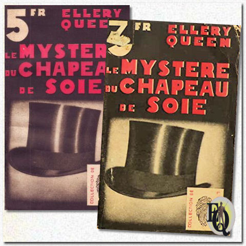 | Boven: Eerste uitgaven hadden identieke kaften. De opdruk op de rug verschillende naargelang de uitgever. Van linksboven naar rechtsonder: telkens stofkaft en harde kaft voor respectievelijk de uitgaven van Stokes, Grosset & Dunlap, International Readers League (alleen harde kaft), Triangle Books; Tower/World Publishing en tot slot de stof en harde kaft voor de Mysterious Press' 50th birthday (Golden Anniversary) editie die ook was voorzien van een nieuwe intro door Frederic Dannay. (Klik op de kaften zelf om die verschillen te zien) * |