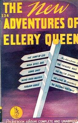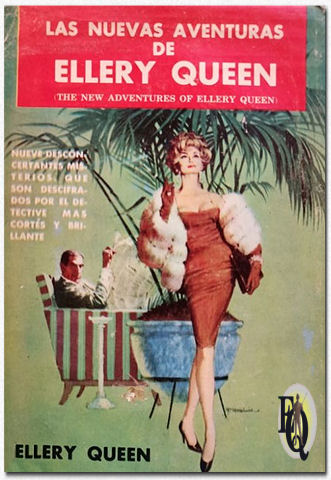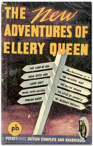 van het verhaal maar er komt eigenlijk nooit een echt mysterie uit. Na het schrijven van 14 kortverhalen, waaronder een novelle, over een periode van drie jaren van 1933-1935, gaf EQ deze vorm wat op in de drie daaropvolgende, hij gaf maar twee middelmatige kortverhalen uit in 1936-1938. In 1939 EQ kwam de terugkeer naar het kortverhaal met een serie van vier kortverhalen elk met een sportachtergrond. In elke verhaal treedt ene Paula Paris op, waarop EQ verliefd werd in The Four of Hearts (1938). Een interessant figuur dat echter nooit meer voorkwam in zijn werken. De eerste drie verhalen zijn zeer goed geschreven en zelfs het zwakkere laatste verhaal "The Trojan Horse" is een aardige poging tot een amusementsmysterie; net als "De Jacht op het Parelsnoer" bestaat het uit één lange zoektocht naar een set gestolen juwelen. "Man Bites Dog" heeft een zekere affiniteit met de minimalistische vergiftigingsverhalen waarover EQ in die jaren essays schreef, net als in Hartenvier en De Verliefde Detective (1942). "Long Shot" keert terug naar de omgeving van De Moordenaar schoot met Scherp (1933), met een verhaal die Westernfiguren combineerde met paarden en geweren, dezelfde elementen van het vroegere boek. De eerste opdracht die Ellery Queen in Hollywood voor de voeten geworpen kreeg was het schrijven van een screenplay rond een paardenrace. Het is dit verhaal dat zijn weg vond als "Long Shot". Het is mogelijk ook de basis voor het script van een TV-episode van The Adventures of Ellery Queen (Episode 54) uit 1951. "Man Bites Dog" (1939), "Long Shot" (1939), "Mind Over Matter" (1939) "The Trojan Horse" (1939) zijn niet opgenomen in de Nederlandstalige vertalingen en daarmee komt de inhoud van De Nieuwe Avonturen van EQ eigenlijk overeen met de eerste versie van het boek die de titel Lamp of God meekreeg. |