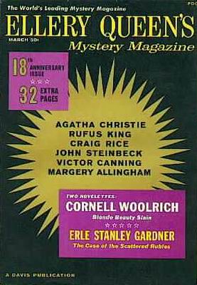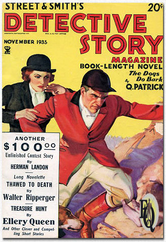 ![]() Boven: Toen "The Adventure of the Treasure Hunt" werd gepubliceerd in het septembernummer 1952 van Clubman magazine was het voorzien van deze illustratie. “Het zag eruit als een onschuldig gezelschapsspel - maar het was bedacht om Ellery Queen naar de schuldige persoon te leiden.” |