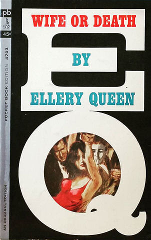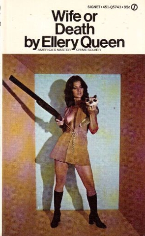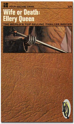 Boven: Almat Magazine co.uit New York gaf Man's Magazine uit. In de jaren zestig publiceerden zij een aantal van de verhalen die niet over Ellery of zijn vader gingen. In het oktobernummer van 1963 verscheen dit verhaal als "A Matter of Wife or Death" met als ondertitel "She was a frisky bride - the loving end".*