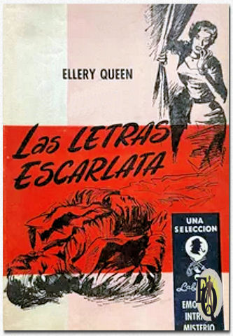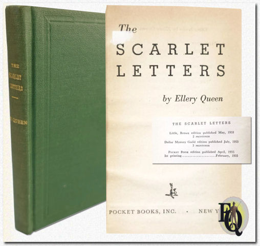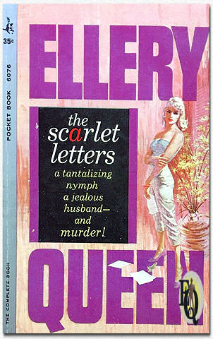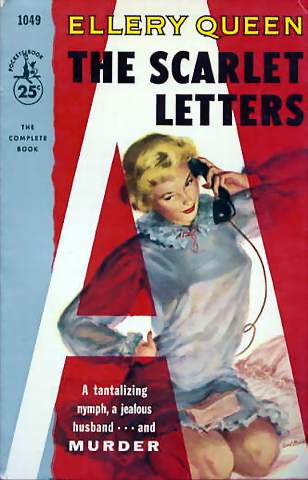 | Boven: Richard Powers artwork voor de omslag van de 1961 Pocket Book editie van The Scarlet Letters door Ellery Queen. | |