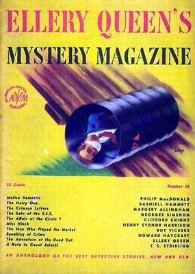 (1) 11-19-39 :60:00* Reworked and printed as "The Telltale Bottle" in EQMM, 11/46 and collected in The Calendar of Crime (1952) Reprinted as "The Thanksgiving Day Mystery" in EQMM, 12/65 Guest Armchair Detectives: Alvena Smith (Tulane University coed) one of four amateur contestants. When delivering holiday food baskets to the poor, Ellery and Nikki stumble into a cocaine-pushing operation and a murder. |