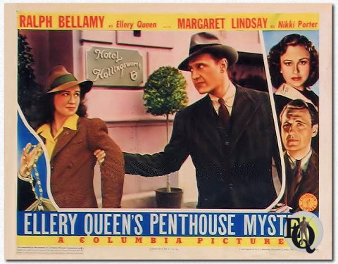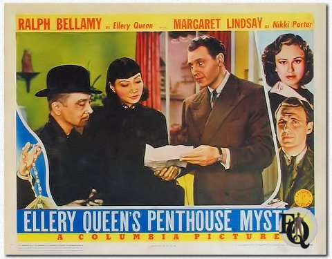 1 maart 1941 " Ellery Queen's Penthouse Mystery', de tweede in de reeks misdaadmelodrama's over en door Ellery Queen, die Larry Darmour produceert voor Columbia, gaat over de pogingen van criminelen om juwelen te kapen die vanuit China naar de Verenigde Staten worden gestuurd om geld in te zamelen voor hongerende vluchtelingen. De film komt traag op gang en blijft een groot deel van de speelduur achter, waardoor er weinig actie in zit. ... De brede aanhang van het radioprogramma en de romans van 'Ellery Queen' zal een extra bron van boxoffice-patroon zijn om uit te putten voor dit." The New York Post "New 'Ellery Queen' Murder Movie at Rialto" door Irene Thirer - 7 maart 1941 "Snelle verandering in de Rialto. Presto een nieuwe whodunit arriveerde gisteren 'Ellery Queen's Penthouse Mystery,' tweede in deze Columbia serie, met Ralph Bellamy in de titelrol van een detective garen schrijver die zijn smerige vader helpt misdaden op te lossen voor het politie departement. Inspecteur Queen wordt gladgeschoren verpersoonlijkt door dezelfde Charley Grapewin die ons de bewhiskered Jeeter Lester geeft in de Roxy's huidige 'Tobacco Road'. De nieuwe 'Ellery Queen' presenteert een tamelijk suspensevol assortiment van misdaad en aanwijzingen - de locatie verschuift van China naar 'Frisco' naar New York, en de actie centreert zich, zoals de titel impliceert, in een penthouse suite waar een zekere Cordon Cobb (Noel Madison) is ondergebracht bij zijn aankomst uit China (op een geheime hulponderneming waarbij het transport van miljoenen dollars aan juwelen is betrokken) - om twee dagen na zijn registratie in het hotel dood in zijn eigen koffer te worden aangetroffen. Naast Ellery en zijn secretaresse Nikki, Margaret Lindsay, die op de zaak stuit wanneer de dochter van het slachtoffer de verdwijning van haar vader meldt, zijn er een aantal verdachten bij betrokken. Cobb was, als hij niet op vakantie was, een wereldberoemde buikspreker. Zijn act werd jarenlang geboekt door ene Walsh, ogenschijnlijk een vriend, maar in werkelijkheid een schurk die op de hoogte is van de missie van zijn cliënt en erop uit is de onbetaalbare juwelen in handen te krijgen voordat ze in dit land kunnen worden aangekocht ten bate van de behoeftige Chinezen. Dan is er een graaf Brett (Eduardo Ciannelli), sinister en glad - die een team vormt met Walsh. Ook is er nog een derde boef, die eigenlijk de vuilste is - ene Jim Ritter, kaartspeler en goochelaar, die niet levend uit de film komt omdat een krantenman (Frankie Albertson), die zich voordoet als een piccolo, hem uit zelfverdediging doodt. Hij zou hoe dan ook naar de stoel zijn gegaan. Geven we teveel van het plot weg? Mr. Bellamy maakt van de jongere Mr. Queen een sympathieke kerel, en Mr. Grapewin doet leuk en wat excentriek met de inspecteur. Margaret Lindsay is een mooie en aantrekkelijke Nikki. Anna May Wong levert een heel charmante bijdrage als Amerikaans-Chinees meisje, zo goed als maar zijn kan - helemaal niet in haar gebruikelijke rol van sirene." |