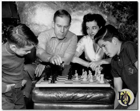 ![]() ![]() Boven links: Harry Morgan speelt schaak met zijn vrouw Eileen en hun zonen, (ca 1955). Klik op de foto voor een grotere versie... Boven rechts: Glenn Ford (R) die Harry Morgan bij de lurven vat (L) in The Teahouse of August Moon (1956). |