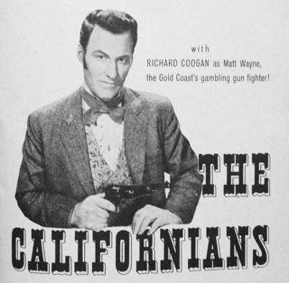 1956), and Vice Raid (United Artists, Dec 1959)**. On the NBC Western television series, The Californians (1957 – 1959) set in the California Gold Rush in San Francisco during the 1850s, Coogan appeared in March 1958 as Marshal Matthew Wayne, a character who struck most viewers and critics as a deliberate clone of Gunsmoke's Marshal Matt Dillon. The starring role had to shift when Adam Kennedy asked to be replaced so he could accept movie roles. So "Matthew Wayne" came to San Francisco, bought a saloon, and soon was elected as the city's sheriff. Matthew Wayne became the main character while "Dion Patrick," Adam Kennedy's role, was being phased out. Dick's co-stars included Carole Mathews in a romantic role as the young widow Wilma Fansler and later Jeopardy! host, Art Fleming. |