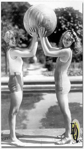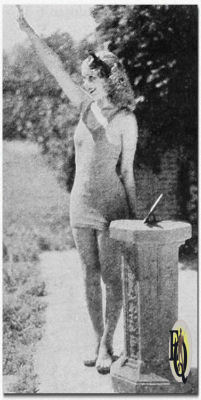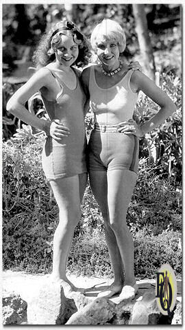 ![]() ![]() ![]() ![]() Above: Two pretty stars of Educational comedies, Marian Shockley and Estelle Bradley, pose for a summer scene. If you live in the blustery portion of America, forget your chills and think of these pleasant California moments. Part of a series of photos "Bathing Beauties Stars". |