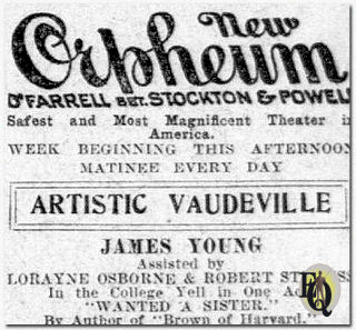![]() Later that same month, the company also tried out another skit Wanted - a Sister again written by his wife (some called it a condensed version of Brown of Harvard) it featured James Young, Robert Strauss and, initially, Lorayne Osborne for the female part. |